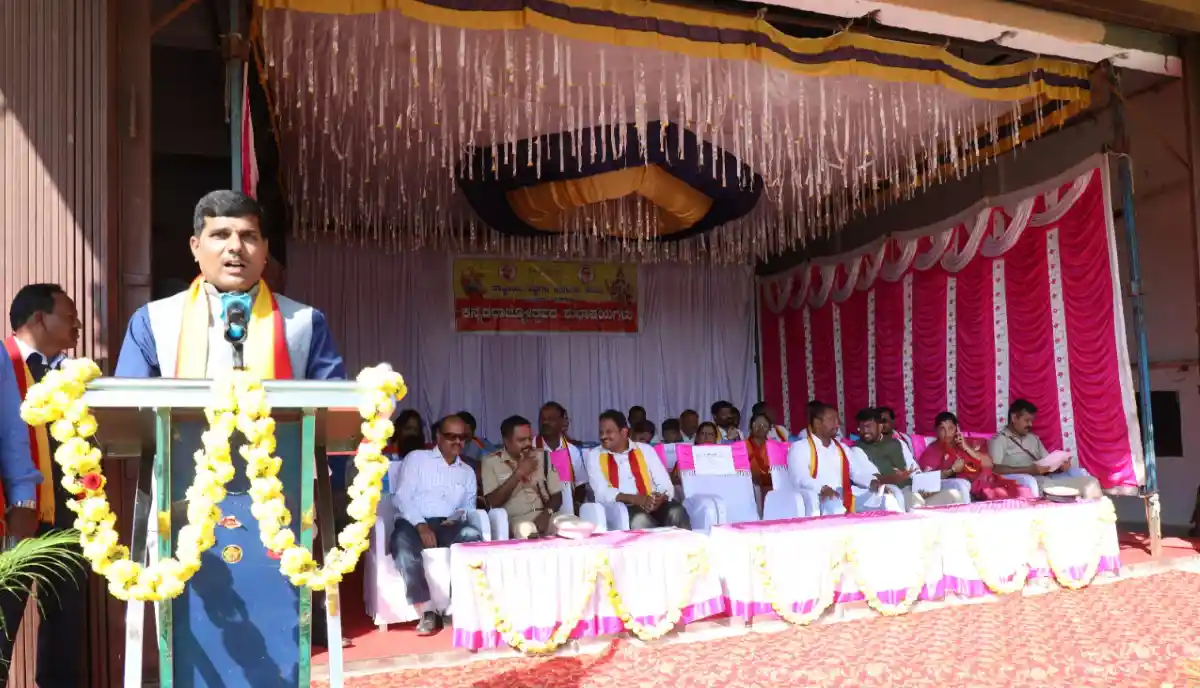 ನಗರದ ನೆಹರು ಮೈದಾನದಲ್ಲಿ ತಾಲೂಕು ಆಡಳಿತ, ತಾಲೂಕು ಪಂಚಾಯಿತಿ, ನಗರಸಭೆ ಹಾಗೂ ರಾಷ್ಟ್ರೀಯ ಹಬ್ಬಗಳ ಆಚರಣೆ ಸಮಿತಿ ವತಿಯಿಂದ ಹಮ್ಮಿಕೊಳ್ಳಲಾಗಿದ್ದ 70ನೇ ಕನ್ನಡ ರಾಜ್ಯೋತ್ಸವ ಕಾರ್ಯಕ್ರಮದ ಧ್ವಜಾರೋಹಣ ನೆರವೇರಿಸಿ ವಿದ್ಯಾರ್ಥಿಗಳಿಂದ ಧ್ವಜವಂದನೆ ಸ್ವೀಕರಿಸಿ ನಂತರ ಮಾತನಾಡಿದರು.
