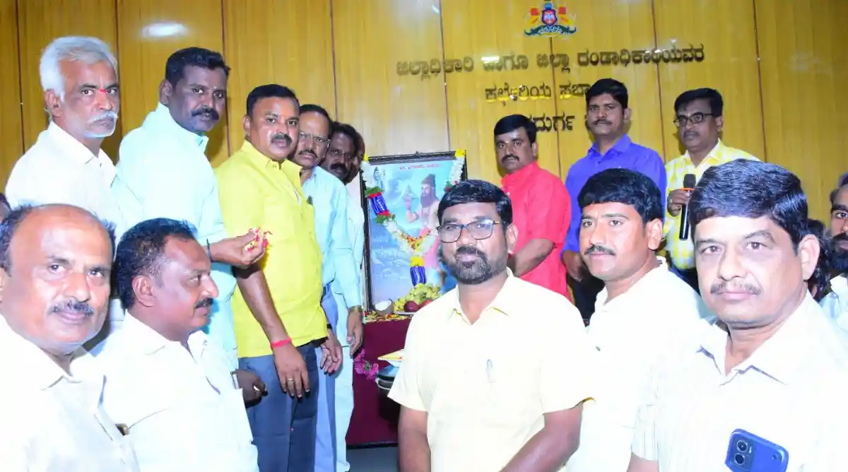 ಪೋಟೋ ವಿವರ: ಚಿತ್ರದುರ್ಗ ನಗರದ ಜಿಲ್ಲಾಧಿಕಾರಿಗಳ ಕಚೇರಿ ಸಭಾಂಗಣದಲ್ಲಿ ಭಾನುವಾರ ಹಮ್ಮಿಕೊಂಡಿದ್ದ ಭಗೀರಥ ಜಯಂತಿ ಕಾರ್ಯಕ್ರಮದಲ್ಲಿ ಭಗೀರಥರ ಭಾವಚಿತ್ರಕ್ಕೆ ಅಪರ ಜಿಲ್ಲಾಧಿಕಾರಿ ಬಿ.ಟಿ.ಕುಮಾರಸ್ವಾಮಿ ಪುಷ್ಪ ನಮನ ಸಲ್ಲಿಸಿದರು.