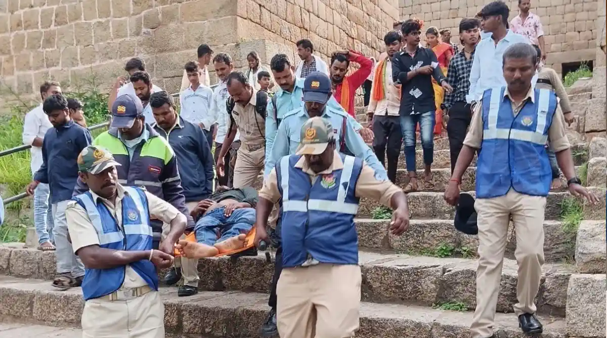 ದಾವಣಗೆರೆ ಮೂಲದ ವ್ಯಕ್ತಿ ಕೋಟೆಯಲ್ಲಿ ಕಾಲುಜಾರಿ ಬಿದ್ದಿದ್ದಾರೆ. ದಾವಣಗೆರೆ ಮೂಲದ ಓಂಕಾರ್ ಎಂಬಾತ ಕೋಟೆ ವೀಕ್ಷಣೆಗೆ ಬಂದಿದ್ದರು. ತುಪ್ಪದಕೊಳ ಬಳಿಯ ಕುದುರೆ ಜಾಡು ಏರುವ ವೇಳೆ ಈ ಘಟನೆ ಸಂಭವಿಸಿದೆ. ದಿಢೀರನೇ ಕಾಲು ಜಾರಿ ಬಿದ್ದಿದ್ದಾರೆ. ಕಾಲು ಜಾರಿಬಿದ್ದ ಓಂಕಾರ್ ಅವರಿಗೆ ಎದೆ, ಕೈಕಾಲಿಗೆ ಪೆಟ್ಟು ಬಿದ್ದಿದೆ. ಕಾಲು ಜಾರಿ ಬಿದ್ದ ಓಂಕಾರ್ ಅವರನ್ನು ತಕ್ಷಣ ಅಲ್ಲಿಯೇ ಇದ್ದಂತ ಪ್ರವಾಸಿ ಮಿತ್ರರು, ಭದ್ರತಾ ಸಿಬ್ಬಂದಿ ರಕ್ಷಣೆ ಮಾಡಿದ್ದಾರೆ. ಸ್ಟ್ರೆಕ್ಚರ್ ನಲ್ಲಿ ಕೋಟೆಯಿಂದ ಕೆಳಗೆ ಕರೆತಂದಿದ್ದಾರೆ. ಗಾಯಾಳು ಓಂಕಾರ್ ಅವರನ್ನು ಚಿತ್ರದುರ್ಗದ ಜಿಲ್ಲಾ ಆಸ್ಪತ್ರೆಗೆ ದಾಖಲು ಮಾಡಿದ್ದಾರೆ. ಆಸ್ಪತ್ರೆಯಲ್ಲಿ ಚಿಕಿತ್ಸೆಯನ್ನು ನೀಡಲಾಗುತ್ತಿದೆ. ಚಿತ್ರದುರ್ಗ ಕೋಟೆ ಠಾಣೆ ವ್ಯಾಪ್ತಿಯಲ್ಲಿ ಪ್ರಕರಣ ನಡೆದಿದೆ.
