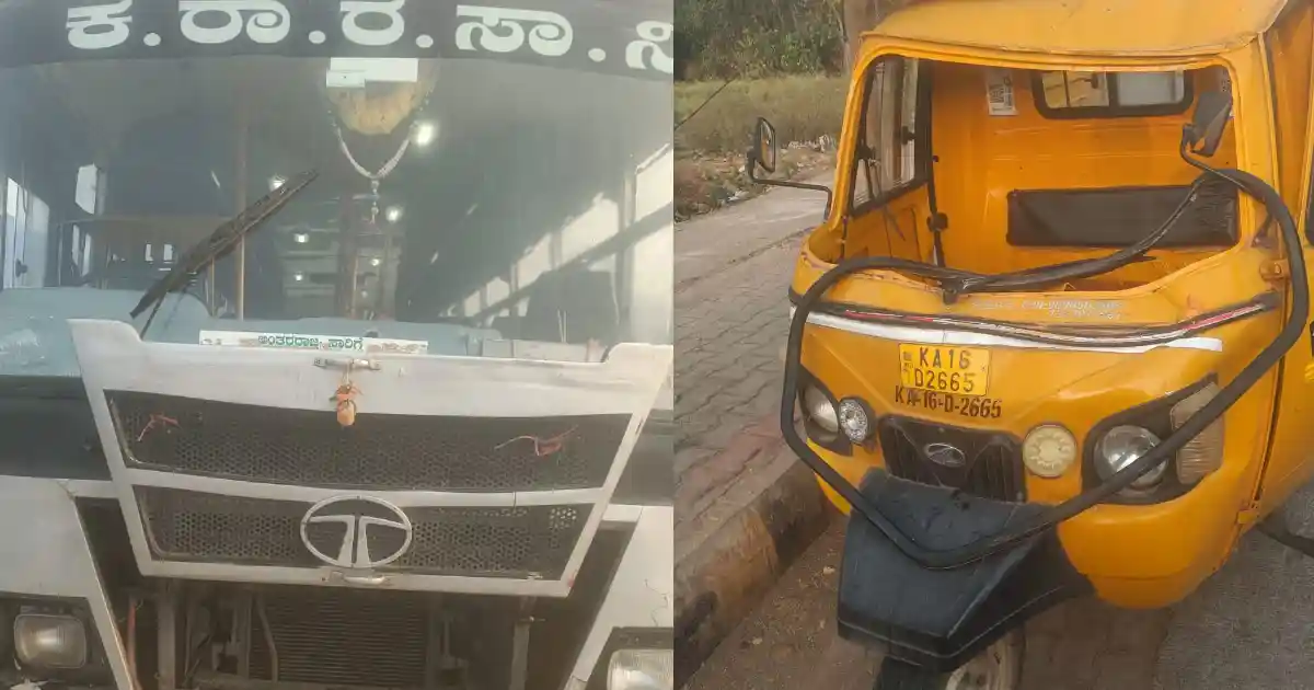 ನಗರದ ಬಿ.ಡಿ.ರಸ್ತೆಯಲ್ಲಿ ಇಂದು ಬೆಳಿಗ್ಗೆ 8 ಗಂಟೆ ಸುಮಾರಿಗೆ ಕೆಎಸ್ಆರ್ಟಿಸಿ ಡಿಪೋ ಒಳಗಿನಿಂದ ಮುಖ್ಯ ರಸ್ತೆಗೆ ಬಸ್ ಬರುತ್ತಿತ್ತು. ಈ ವೇಳೆ ಶರಣ ಬಸವೇಶ್ವರ ಶಾಲಾ ಮಕ್ಕಳನ್ನು ಸ್ಟೇಡಿಯಂಗೆ ಕರೆದುಕೊಂಡು ಹೋಗುತ್ತಿದ್ದ ಆಪೇ ವಾಹನವು ಬಸ್ ಗೆ ಡಿಕ್ಕಿ ಹೊಡೆದಿದೆ. ಆಟೋ ಮಗುಚಿಬಿದ್ದು ವಾಹನದಲ್ಲಿದ್ದ ಶಾಲಾ ಮಕ್ಕಳಿಗೆ ಸಣ್ಣಪುಟ್ಟ ಗಾಯಗಳಾಗಿದ್ದು ತಕ್ಷಣವೇ ಅಲ್ಲಿದ್ದ ಸ್ಥಳೀಯರು ಶಾಲಾ ಮಕ್ಕಳನ್ನು ಆಸ್ಪತ್ರೆಗೆ ದಾಖಲಿಸಿದ್ದಾರೆ.