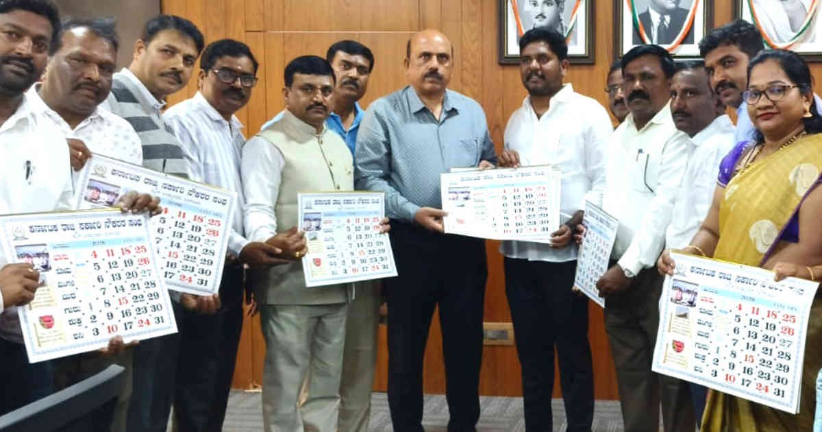 ಜಿಲ್ಲಾಧಿಕಾರಿಗಳ ಕಚೇರಿಯಲ್ಲಿ ಸರ್ಕಾರಿ ನೌಕರರ ಸಂಘದ 2026 ರ ಕ್ಯಾಲೆಂಡರ್ ಬಿಡುಗಡೆಗೊಳಿಸಿದ ಜಿಲ್ಲಾಧಿಕಾರಿ ಟಿ. ವೆಂಕಟೇಶ್ ಅವರು ಜಿಲ್ಲೆಯ ಸಮಸ್ತ ಸರ್ಕಾರಿ ನೌಕರರಿಗೆ ಹೊಸ ವರ್ಷದ ಶುಭಾಶಯ ಕೋರಿದರು. ಸರ್ಕಾರಿ ನೌಕರರು ನೂತನ ಕ್ಯಾಲೆಂಡರ್ ವರ್ಷದಲ್ಲಿ ಶ್ರದ್ಧೆ ಹಾಗೂ ಪ್ರಾಮಾಣಿಕವಾಗಿ ಕರ್ತವ್ಯ ನಿರ್ವಹಿಸುವ ಮೂಲಕ ಸಾರ್ವಜನಿಕರಿಗೆ ಉತ್ತಮ ಸೇವೆ ಒದಗಿಸಬೇಕು. ಜಿಲ್ಲೆಯ ಅಭಿವೃದ್ಧಿಗೆ ಕೈಜೋಡಿಸಬೇಕು ಎಂದು ಮನವಿ ಮಾಡಿದರು.