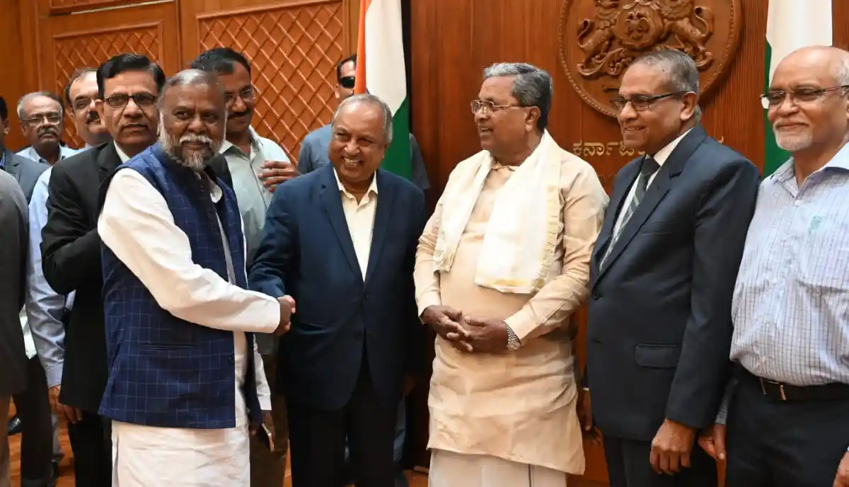 ಬೆಂಗಳೂರಿನ ವಿಧಾನಸೌಧದ ಸಿಎಂ ಕಚೇರಿ ಕೊಠಡಿಯಲ್ಲಿ ವರದಿ ಸಲ್ಲಿಕೆ ಬಳಿಕ ನ್ಯಾ.ನಾಗಮೋಹನ್ ದಾಸ್ ಅವರನ್ನು ಅಭಿನಂದಿಸಿ, ಮುಖ್ಯಮಂತ್ರಿ ಸಿದ್ದರಾಮಯ್ಯ