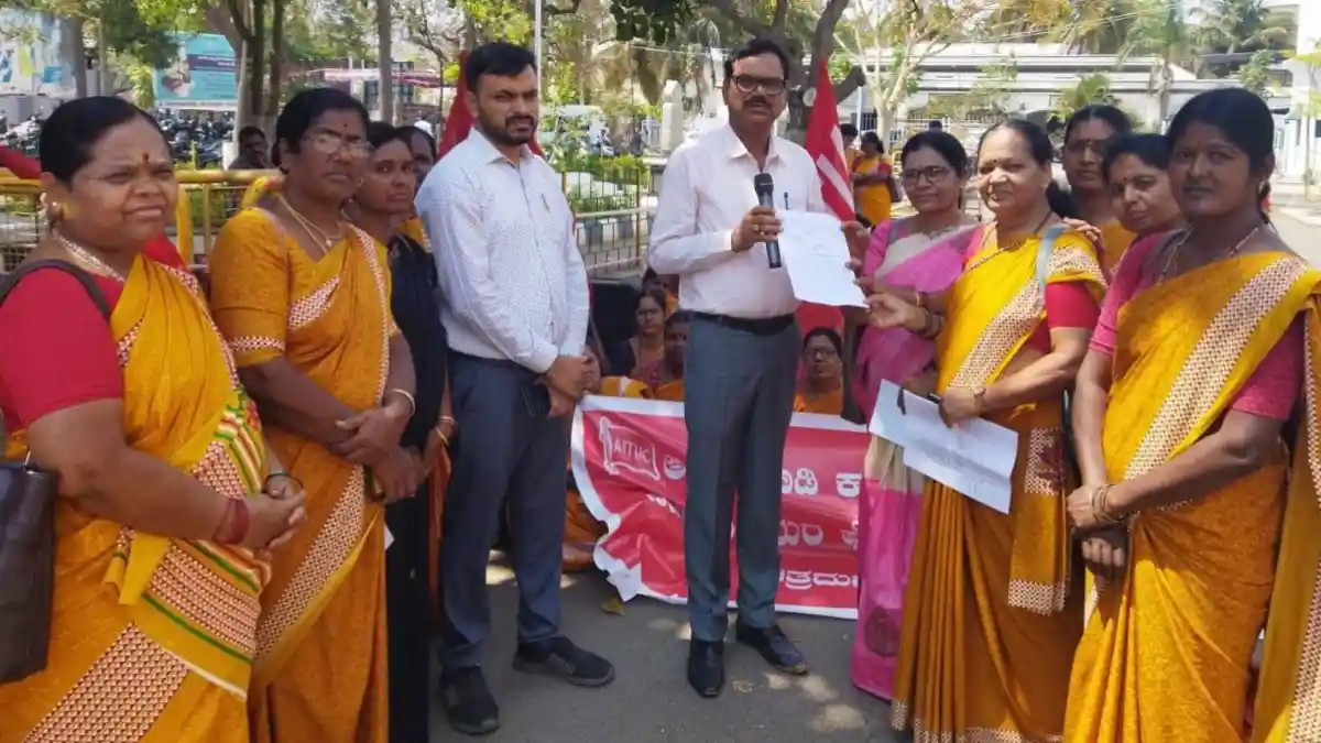 ಕರ್ನಾಟಕ ರಾಜ್ಯ ಅಂಗನವಾಡಿ ಕಾರ್ಯಕರ್ತೆಯರ ಹಾಗೂ ಸಹಾಯಕಿಯರ ಫೆಡರೇಷನ್ ಜಿಲ್ಲಾ ಸಮಿತಿ, ಎಐಟಿಯುಸಿ ಸಹಯೋಗದೊಂದಿಗೆ ಪ್ರವಾಸಿ ಮಂದಿರದಿಂದ ಮೆರವಣಿಗೆ ಮೂಲಕ ಜಿಲ್ಲಾಧಿಕಾರಿ ಕಚೇರಿಗೆ ಆಗಮಿಸಿದ ಪ್ರತಿಭಟನಾಕಾರರು ಮಹಿಳಾ ಮತ್ತು ಮಕ್ಕಳ ಕಲ್ಯಾಣ ಇಲಾಖೆಗೆ ರಾಜ್ಯ ಬಜೆಟ್ನಲ್ಲಿ ಹೆಚ್ಚು ಅನುದಾನ ಮೀಸಲಿಟ್ಟಿದೆಯೆ ವಿನಃ ಯಾವುದೇ ಜೀವನ ಭದ್ರೆತೆಯಿಲ್ಲದೆ ಹತ್ತಾರು ವರ್ಷಗಳಿಂದಲೂ ಸೇವೆ ಸಲ್ಲಿಸುತ್ತಿರುವ ನಮಗೆ ಗೌರವ ಧನ ನೀಡದೆ ಸೀರೆ ಕೊಟ್ಟು ಕಾರ್ಮಿಕ ವಿರೋಧಿ ನೀತಿ ಅನುಸರಿಸಿದೆ. ಸೀರೆಗಾಗಿ ಮೀಸಲಿಟ್ಟಿರುವ ಹಣವನ್ನು ಗೌರವ ಧನ ಹೆಚ್ಚಳಕ್ಕೆ ಬಳಸುವಂತೆ ಅಂಗನವಾಡಿ ಕಾರ್ಯಕರ್ತೆಯರು ಹಾಗೂ ಸಹಾಯಕಿಯರು ಒತ್ತಾಯಿಸಿದರು.