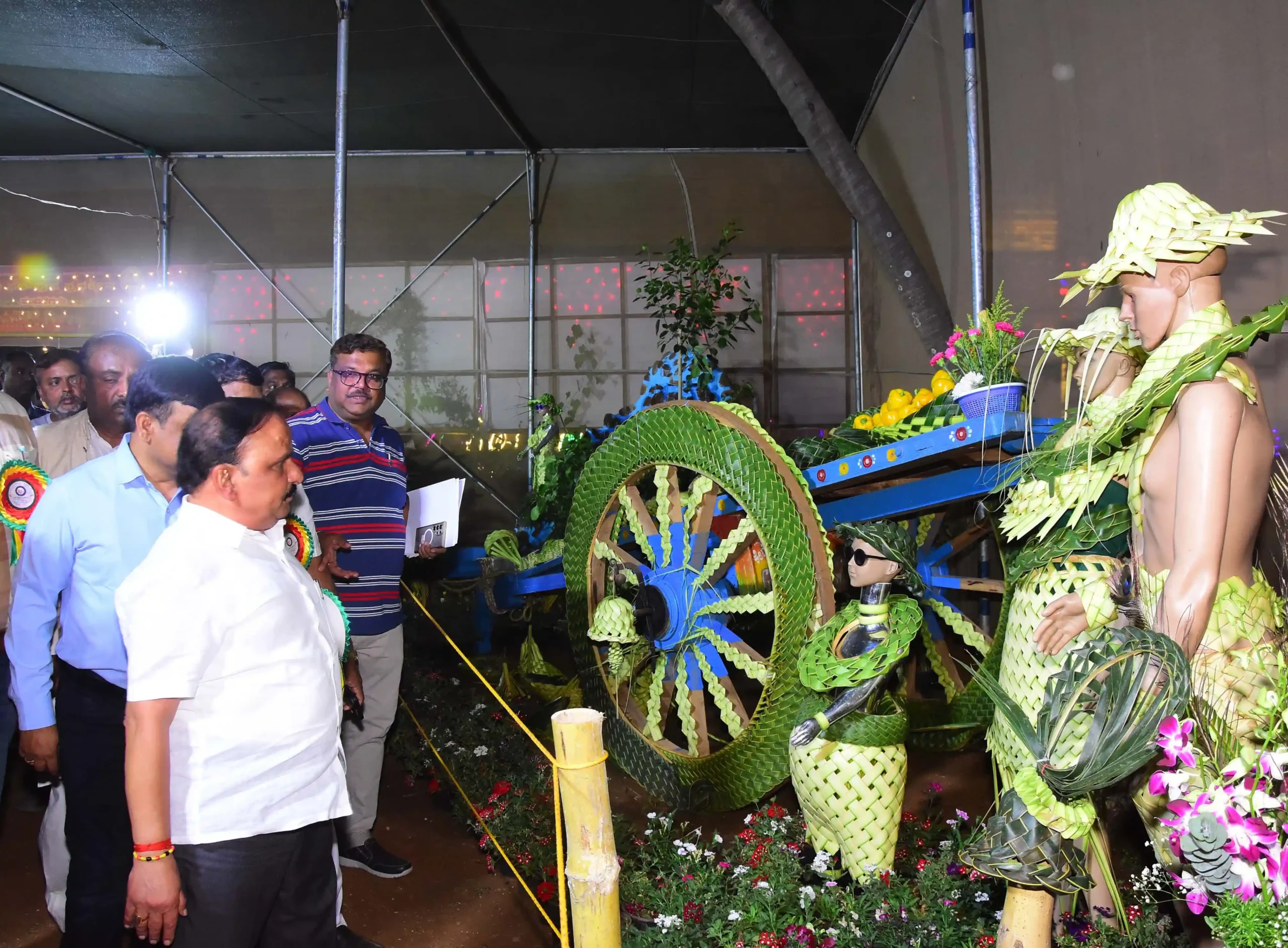 ಫಲಪುಷ್ಪ ಪ್ರದರ್ಶನದಲ್ಲಿ ಕಲಾವಿದರ ಕೈಚಳಕದಲ್ಲಿ ಮೂಡಿಬಂದಿರುವ ಹೂವಿನ ಟಾಂಗ, ನಾಯಕನಹಟ್ಟಿ ಶ್ರೀ ಕ್ಷೇತ್ರದ ಶ್ರೀ ತಿಪ್ಪೇರುದ್ರಸ್ವಾಮಿ, ಒನಕೆ ಓಬವ್ವ, ಒಳಮಠ, ಹೊರಮಠ, ಚಿತ್ರದುರ್ಗ ಹೆಸರಾಂತ ಸಾಹಿತಿ ಬಿ.ಎಲ್.ವೇಣು ಅವರ ಸಾಹಿತ್ಯ ಕೊಡುಗೆಗಳನ್ನು ಬಿಂಬಿಸುವ ಕಲಾಕೃತಿ, ಮತ್ಸ್ಯ ಪ್ರದರ್ಶನಗಳು ಆಕರ್ಷಣೆ ಎನಿಸಿವೆ.