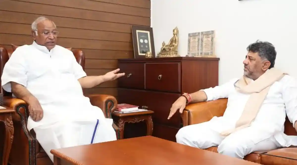 ಬೆಂಗಳೂರು; ರಾಜ್ಯ ಕಾಂಗ್ರೆಸ್ ಸರ್ಕಾರದಲ್ಲಿ ಅಧಿಕಾರದ ಚರ್ಚೆಯೇ ಜೋರಾಗಿದೆ. ಸಿಎಂ ಸ್ಥಾನದಲ್ಲಿರುವ ಸಿದ್ದರಾಮಯ್ಯ ಅವರನ್ನ ಕೆಳಗಿಳಿಸುತ್ತಾರೆ, ಡಿಸಿಎಂ ಡಿಕೆ ಶಿವಕುಮಾರ್ ಗೆ ಈ ಅವಧಿಯಲ್ಲಿಯೇ ಸಿಎಂ ಪಟ್ಟ ಸಿಗುತ್ತದೆ ಎಂಬೆಲ್ಲಾ ಚರ್ಚೆಗಳು ನಡೆಯುತ್ತಿದ್ದವು. ಈಚೆಗಷ್ಟೇ ಮಾಜಿ ಸಿಎಂ ವೀರಪ್ಪ ಮೊಯ್ಲಿ ಅವರು ಕೂಡ ಡಿಕೆಶಿ ಸಿಎಂ ಆಗ್ತಾರೆ ಎಂದು ಹೇಳಿದ್ದರು. ಇಷ್ಟೆಲ್ಲಾ ಚರ್ಚೆ ಬೆಳವಣಿಗೆಯ ನಡುವೆ ಡಿಸಿಎಂ ಡಿಕೆ ಶಿವಕುಮಾರ್ ಅವರು ಎಐಸಿಸಿ ಅಧ್ಯಕ್ಷ ಮಲ್ಲಿಕಾರ್ಜುನ ಖರ್ಗೆ ಅವರನ್ನ ಭೇಟಿಯಾಗಿದ್ದಾರೆ. ಇದು ಸಾಕಷ್ಟು ಚರ್ಚೆಗೆ ಗ್ರಾಸವಾಗಿದೆ.