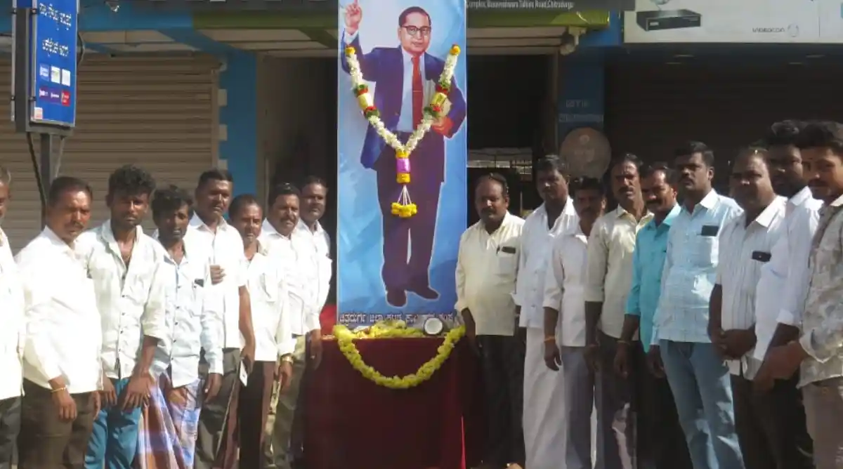 ಡಾ.ಬಿ.ಆರ್.ಅಂಬೇಡ್ಕರ್‍ರವರ ಬೃಹಧಾಕಾರವಾದ ಫೋಟೋಗೆ ಪುಷ್ಪಾರ್ಚನೆ ಸಲ್ಲಿಸಿ ಮಾತನಾಡಿದ ಜಿಲ್ಲಾ ಕಟ್ಟಡ ಕಾರ್ಮಿಕರ ಸಂಘದ ಅಧ್ಯಕ್ಷ ವೈ.ತಿಪ್ಪೇಸ್ವಾಮಿ