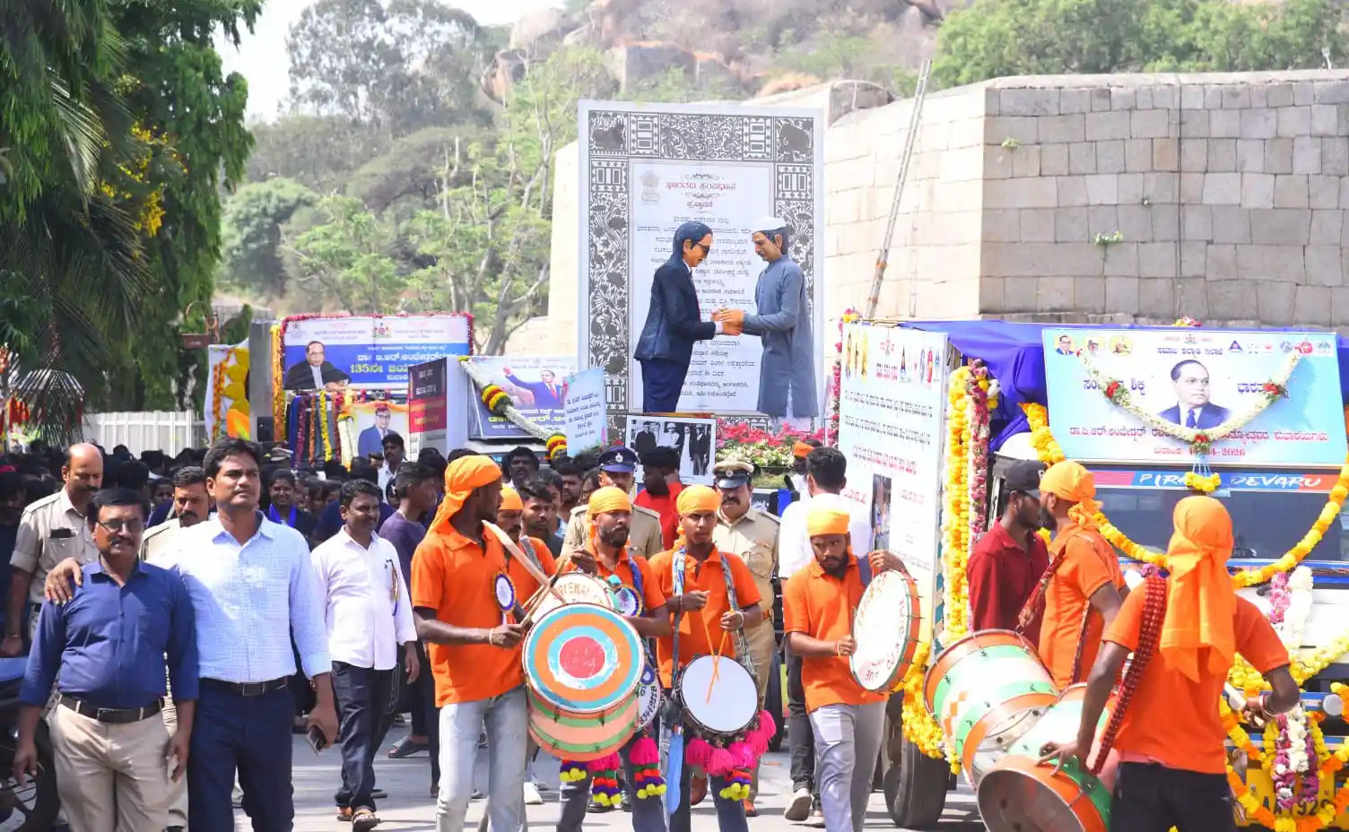 ಮೆರವಣಿಗೆಯಲ್ಲಿ ನಾಸಿಕ್ ಡೋಲ್, ತಾಷರಾಮ್ ಡೋಲ್ ಜಾನಪದ ಕಲಾತಂಡಗಳು ಭಾಗವಹಿಸಿದ್ದವು. ಡಾ.ಬಿ.ಆರ್.ಅಂಬೇಡ್ಕರ್ ಸಂವಿಧಾನ ರಚನಾ ಸಭೆಯ ಅಧ್ಯಕ್ಷ ಡಾ.ಬಾಬು ರಾಜೇಂದ್ರ ಪ್ರಸಾದ್ ಅವರಿಗೆ ಸಂವಿಧಾನ ಪ್ರತಿ ಹಸ್ತಾಂತರಿಸುವ ಸ್ತಬ್ದ ಗಮನ ಸೆಳೆಯಿತು. ಇದರೊಂದಿಗೆ ಸಮಾಜ ಕಲ್ಯಾಣ ಹಾಗೂ ಪರಿಶಿಷ್ಟ ವರ್ಗಗಳ ಕಲ್ಯಾಣ ಇಲಾಖೆ ಸೇರಿದಂತೆ ವಿವಿಧ ಅಭಿವೃದ್ಧಿ ನಿಗಮಗಳ ಅಡಿ ದೊರೆಯುವ ಸರ್ಕಾರದ ಸೌಲತ್ತುಗಳ ಮಾಹಿತಿಯನ್ನು ಪ್ರಚುರಪಡಿಸಲಾಯಿತು.