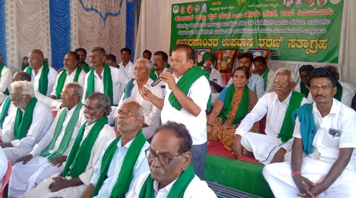 ತಾಲೂಕಿನ ಜವನಗೊಂಡನಹಳ್ಳಿಯಲ್ಲಿ ನಡೆಯುತ್ತಿದ್ದ ರೈತರ ಅನಿರ್ದಿಷ್ಟಾವಧಿ ಧರಣಿ ಸತ್ಯಾಗ್ರಹವನ್ನು ವರ್ಗಾಯಿಸಿಕೊಂಡು, ಜೆಜಿ ಹಳ್ಳಿ , ಐಮಂಗಲ ಹಾಗೂ ಕಸಬಾ ಹೋಬಳಿಯ ಎಲ್ಲಾ ಕೆರೆಗಳಿಗೆ ನೀರು ತುಂಬಿಸುವಂತೆ ಆಗ್ರಹಿಸಿ ತಾಲೂಕು ಕಛೇರಿ ಮುಂಭಾಗದಲ್ಲಿ ಹಮ್ಮಿಕೊಂಡಿದ್ದ ಧರಣಿ ಸತ್ಯಾಗ್ರಹ ಕುರಿತು ಮಾತನಾಡಿದರು.