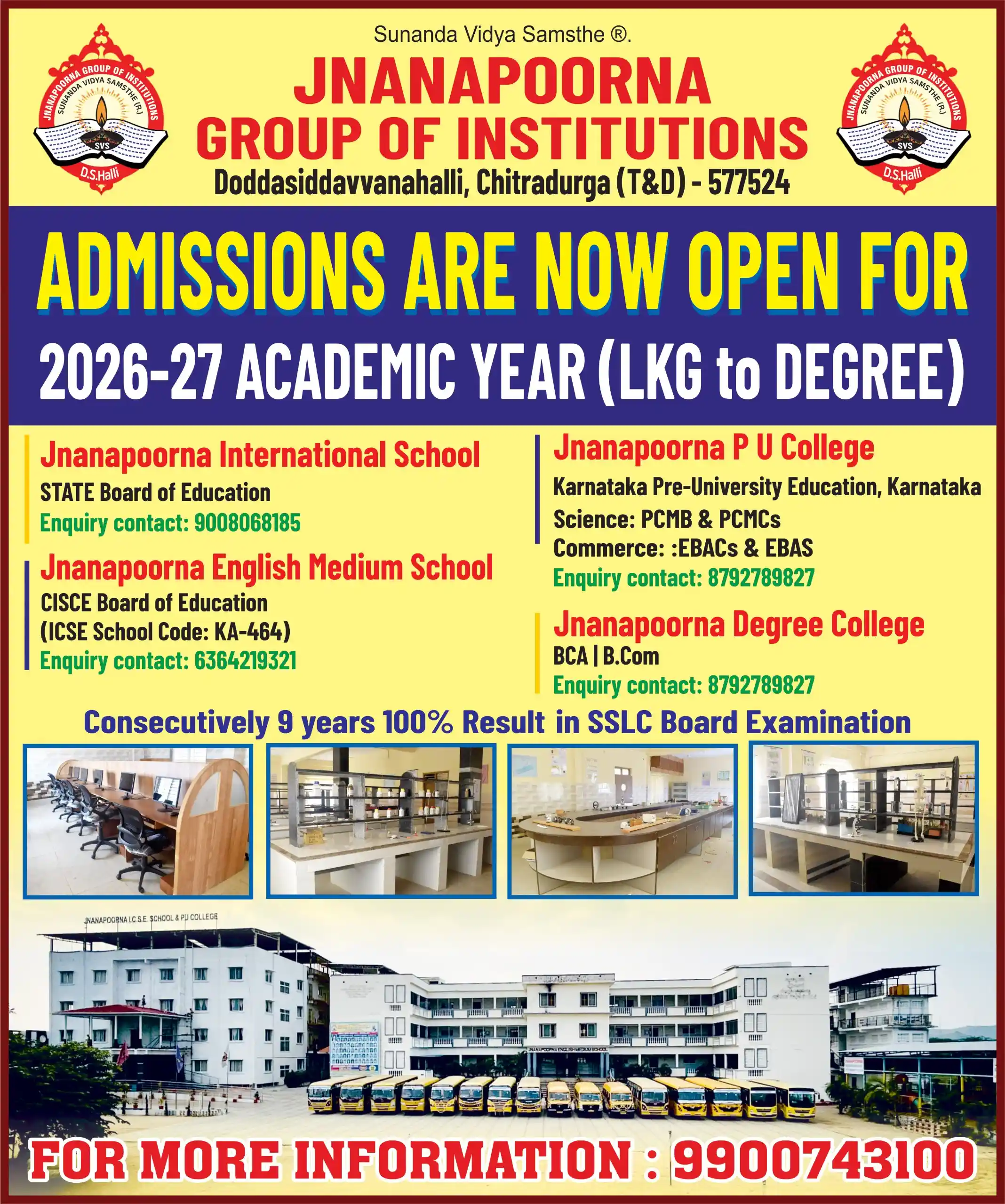6. ಶ್ರೀ ರಾಘವೇಂದ್ರ ಗ್ರೂಪ್ ಆಫ್ ಇನ್ಸ್ಟಿಟ್ಯೂಷನ್ಸ್, 7. ಜ್ಞಾನಪೂರ್ಣ ಪಿಯು ಕಾಲೇಜ್, ದೊಡ್ಡಸಿದ್ದವ್ವನಹಳ್ಳಿ,