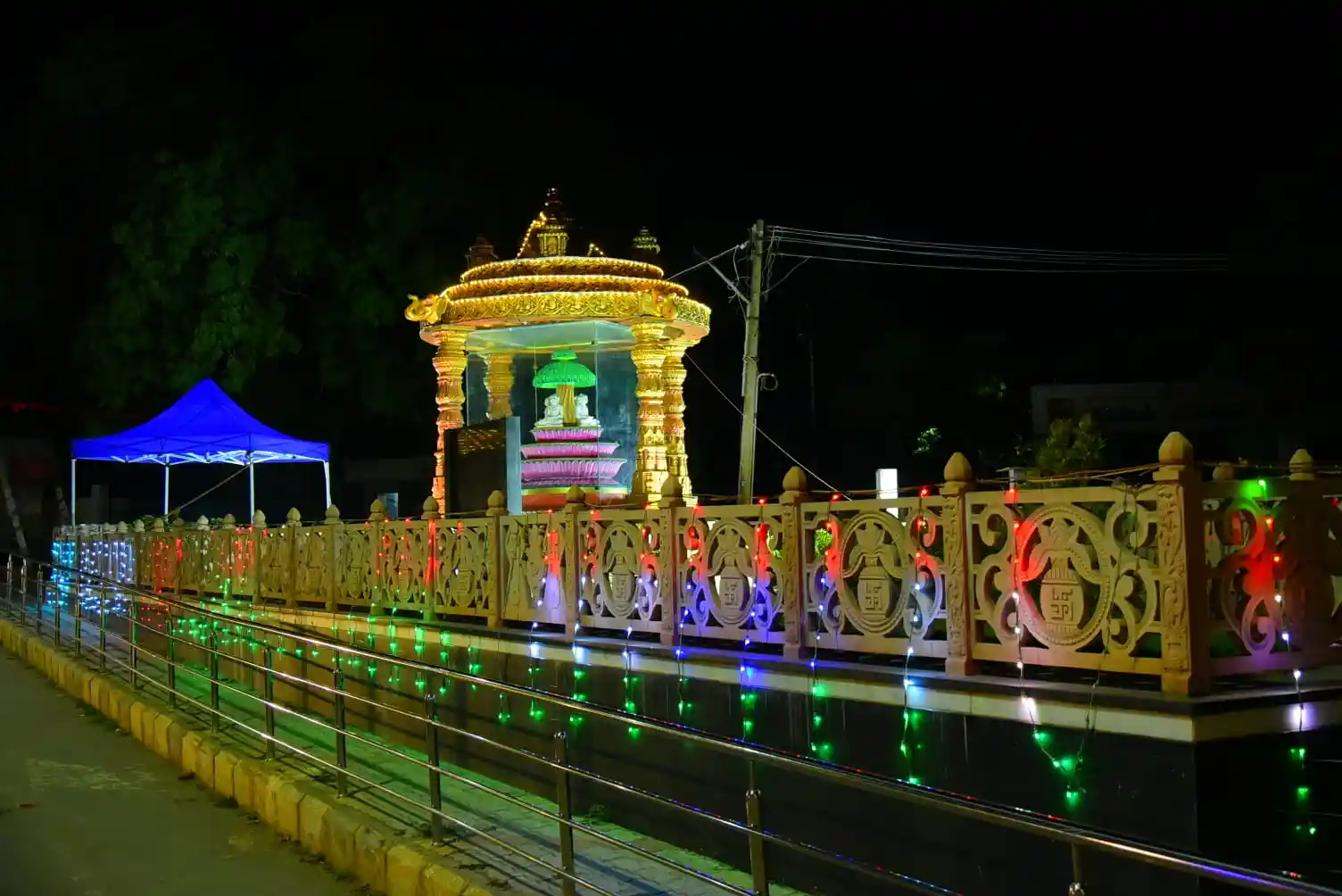 ಭಗವಾನ್ ಮಹಾವೀರ ಪ್ರತಿಮೆಗೆ ಮಂಟಪದ ಅಲಂಕಾರವನ್ನು ಮಾಡಲಾಗಿದೆ. ಉತ್ತಮವಾದ ಮಂಟಪವನ್ನು ನಿರ್ಮಾಣ ಮಾಡಿದ್ದಾರೆ. ಇಲ್ಲಿಯೂ ಸಹಾ ವಿದ್ಯುತ್ ದೀಪಗಳನ್ನು ಅಲಂಕಾರ ಮಾಡಲಾಗಿದೆ.