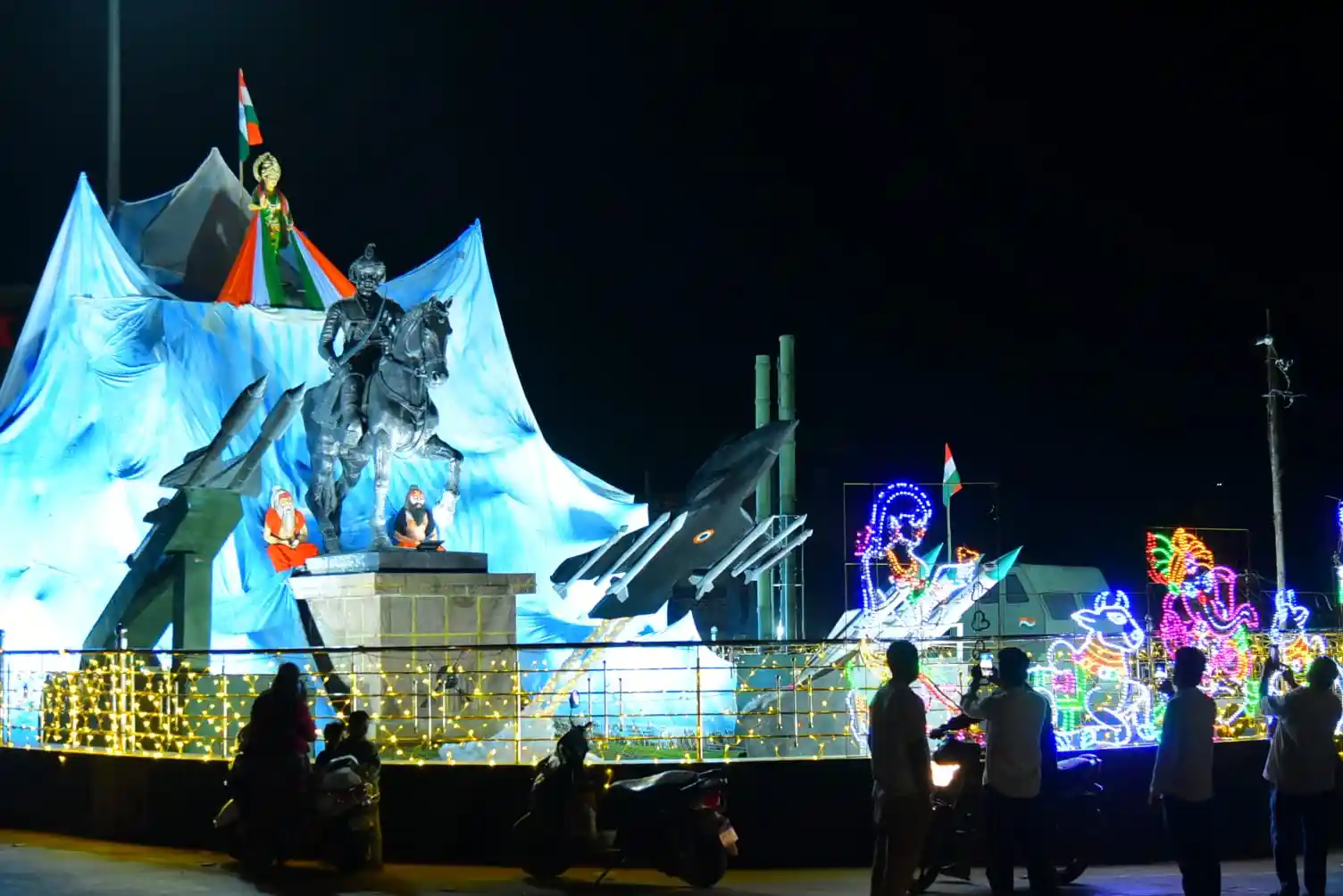 ಚಿತ್ರದುರ್ಗವನ್ನು ಆಳಿದ ಮದಕರಿ ನಾಯಕ ಪ್ರತಿಮೆಯ ಬಳಿ ಈ ಬಾರಿ ವಿಶಿಷ್ಟವಾದ ಅಲಂಕಾರವನ್ನು ಮಾಡಲಾಗಿದೆ. ಮದಕರಿ ನಾಯಕ ಹಿಂದೆ ಹಿಮಾಲಯ ಪವರ್ತವನ್ನು ನಿರ್ಮಾಣ ಮಾಡಿ ಅದರ ಮೇಲೆ ಕನ್ನಡಾಂಬೆಯನ್ನು ಪ್ರತಿಷ್ಠಾಪನೆ ಮಾಡಿ ಆಕೆಯ ಕೈಗೆ ಭಾರತ ದೇಶದ ಭಾವುಟವನ್ನು ನೀಡಲಾಗಿದೆ. ನಾಯಕ ಜನಾಂಗದ ಮಹರ್ಷಿ ವಾಲ್ಮಿಕಿಯ ಚಿತ್ರವನ್ನು ಹಾಕಲಾಗಿದೆ ಇದರೊಂದಿಗೆ ಮುಂದುಗಡೆಯಲ್ಲಿ ದೇಶದ ರಕ್ಷಣೆಗೆ ಸಂಬಂಧಪಟ್ಟ ಶಸ್ತ್ರಸ್ರಗಳಾದ ಬ್ರಹ್ಮೋಸ್ ರಾಕೆಟ್ಗಳನ್ನು ನಿರ್ಮಾಣ ಮಾಡಲಾಗಿದೆ. ಇದಾದ ನಂತರ ವಿದ್ಯುತ್ ದೀಪದಲ್ಲಿ ಗಣೇಶನ ಹಾಗೂ ನಂದಿಯ ಚಿತ್ರಗಳನ್ನು ಮೂಡಿಸಲಾಗಿದೆ. ಮದಕರಿ ನಾಯಕನ ವೃತ್ತದ ಸುತ್ತಾ ವಿದ್ಯುತ್ ದೀಪಗಳಿಂದ ಅಲಂಕಾರವನ್ನು ಮಾಡಲಾಗಿದೆ.