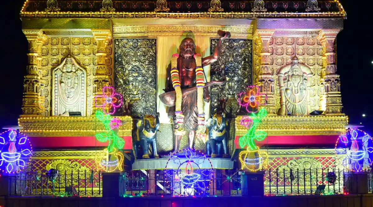 ಇದಾದ ನಂತರ ದೇಶಕ್ಕೆ ಸಂವಿಧಾನವನ್ನು ನೀಡಿದ ಭಾರತರತ್ನ ಬಿ.ಆರ್. ಅಂಬೇಡ್ಕರ್ ರವರ ಪ್ರತಿಮೆಗೂ ಸಹಾ ವಿಶೇಷವಾದ ಅಲಂಕಾರವನ್ನು ಮಾಡಲಾಗಿದೆ ಪ್ರತಿಮೆಯ ಹಿಂದೆ ಸ್ತಂಭಗಳ ಮೂಲಕ ಮಂಟಪವನ್ನು ನಿರ್ಮಾಣ ಮಾಡಿ ಅದಕ್ಕೆ ವಿದ್ಯುತ್ ದೀಪಗಳಿಂದ ಅಲಂಕಾರವನ್ನು ಮಾಡಲಾಗಿದೆ.