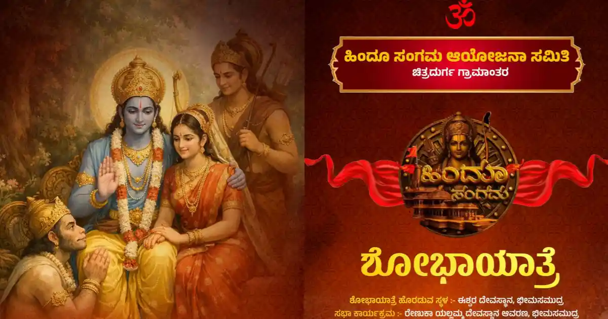 ಹಿಂದೂ ಕಾರ್ಯಕರ್ತರು ಆಗಮಿಸ್ತಾರೆ. ಶೋಭ ಯಾತ್ರೆ ಗ್ರಾಮದ ಈಶ್ವರ ದೇವಸ್ಥಾನದಿಂದ ಪ್ರಾರಂಭವಾಗಿ ರೇಣುಕಾ ಎಲ್ಲಮ್ಮ ದೇವಸ್ಥಾನದವರೆಗೆ ಸಾಗಲಿದೆ ಎಂದು ತಿಳಿಸಿದರು.