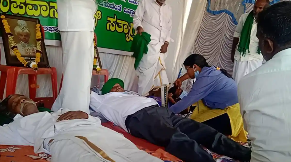 ನಿನ್ನೆ ಸಂಜೆ ವೇಳೆ ಧರಣಿ ನಡೆಸುತಿದ್ದ ರೈತ ಈರಣ್ಣ( 70) ಅಸ್ವಸ್ಥರಾಗಿದ್ದರು. ಇಂದು ರೈತ ಸಂಘದ ಅಧ್ಯಕ್ಷ ಕೆ.ಟಿ. ತಿಪ್ಪೇಸ್ವಾಮಿ ( 48) ಮತ್ತು ತಿಮ್ಮಣ್ಣ ಅಸ್ವಸ್ಥರಾಗಿದ್ದು ಈ ಮೂಲಕ ಅಸ್ವಸ್ಥರಾದ ರೈತರ ಸಂಖೆ ಮೂರಕ್ಕೇರಿದೆ.