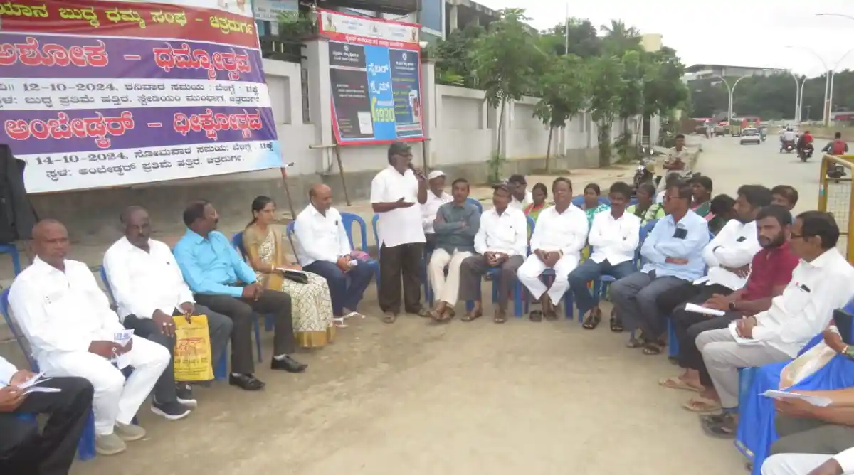 ಅಂಬೇಡ್ಕರ್-ನವಯಾನ ಬುದ್ದ ಧಮ್ಮ ಸಂಘದಿಂದ ಅಂಬೇಡ್ಕರ್ ಪ್ರತಿಮೆ ಹತ್ತಿರ ಸೋಮವಾರ ನಡೆದ ಧಮ್ಮ ದೀಕ್ಷೋತ್ಸವದಲ್ಲಿ ಭಾಗವಹಿಸಿ ಮಾತನಾಡಿದರು.
