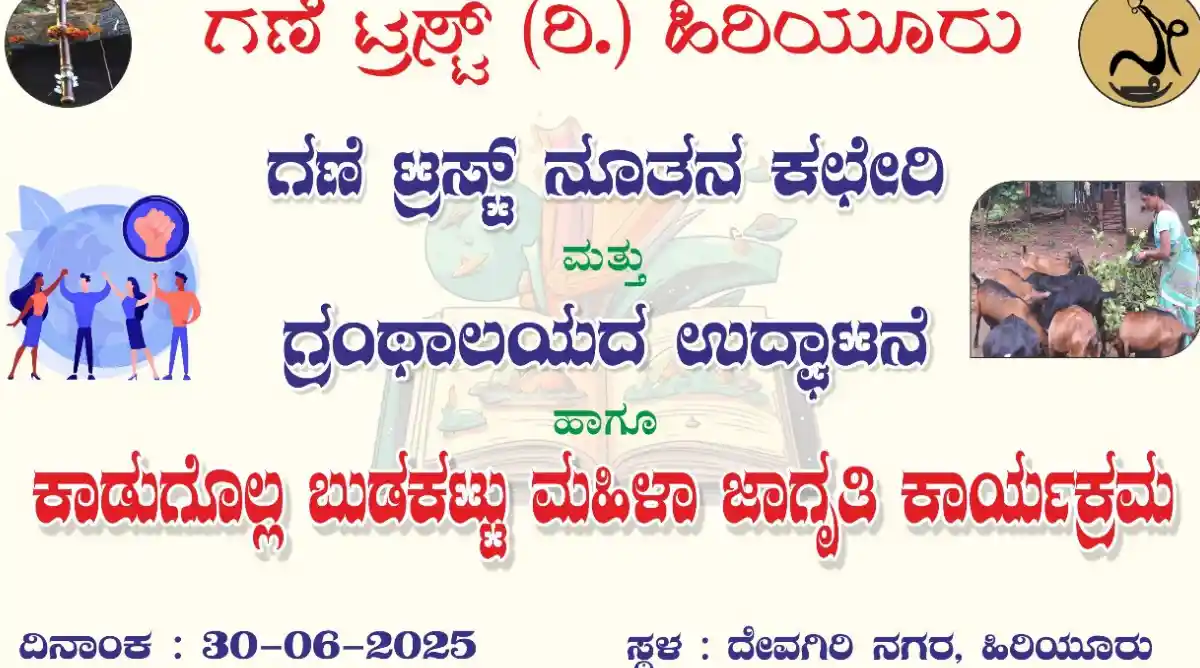 ಜೂನ್ 30ರಂದು ಹಿರಿಯೂರಿನಲ್ಲಿ ಗಣೆ ಟ್ರಸ್ಟ್ (ರಿ), ಮತ್ತು ಗ್ರಂಥಾಲಯದ ಉದ್ಘಾಟನೆ