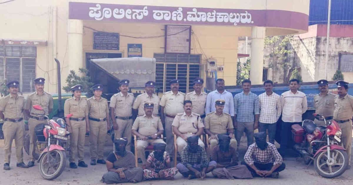 ಆರೋಪಿಗಳ ಪತ್ತೆ ಕಾರ್ಯ ಕೈಗೊಂಡು ಘಟನೆ ನಡೆದ 48 ಗಂಟೆಯೊಳಗೆ ಐವರು ಆರೋಪಿಗಳನ್ನು ಮೊಳಕಾಲ್ಮೂರು ವೃತ್ತ ನಿರೀಕ್ಷಕರವರಾದ ನಾಗರಾಜ್, ಆರ್. ಹಾಗೂ ಪಿ.ಎಸ್.ಐ ರವರಾದ ಮಹೇಶ್ ಲಕ್ಷ್ಮಣ ಹೊಸಪೇಟ ಹಾಗೂ ಸಿಬ್ಬಂದಿಯವರಾದ ವೀರಣ್ಣ, ಓಬಣ್ಣ, ಹರೀಶ, ಸತೀಶ್, ಖಾದರ್ ಭಾಷ, ಪ್ರಭುದೇವ, ಬಜ್ಜಣ್ಣ, ನಂದಪ್ಪ, ಲಕ್ಷ್ಮೀಪತಿ, ಹುಲುಗಪ್ಪ ಭೂವಿ, ಆಶಾರಾಣಿ ಮತ್ತು ಸೌಭಾಗ್ಯ ಬಾರಕೇರ ರವರ ತಂಡ ಬಂಧಿಸಿರುತ್ತಾರೆ.