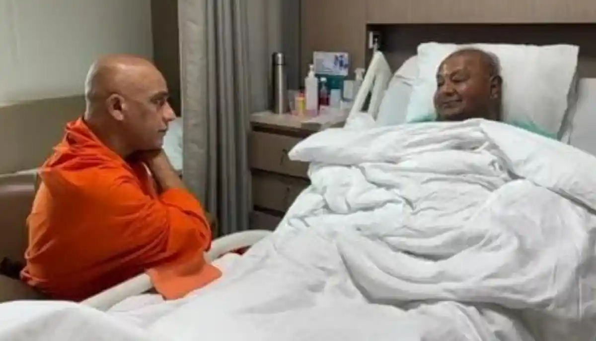 ಬೆಂಗಳೂರು: ಅನಾರೋಗ್ಯದ ಕಾರಣ ಮಾಜಿ ಪ್ರಧಾನಿ ಹೆಚ್.ಡಿ.ದೇವೇಗೌಡ ಅವರು ಆಸ್ಪತ್ರೆಗೆ ದಾಖಲಾಗಿ ಚಿಕಿತ್ಸೆ ಪಡೆಯುತ್ತಿದ್ದಾರೆ. ಆರೋಗ್ಯ ಸ್ಥಿತಿ ಸುಧಾರಿಸುತ್ತಿದೆ. ಇನ್ನೆರಡು ದಿನದಲ್ಲಿ ಡಿಸ್ಚಾರ್ಜ್ ಆಗಲಿದ್ದಾರೆ ಎಂದು ಕುಮಾರಸ್ವಾಮಿ ಅವರು ಕೂಡ ಮಾಹಿತಿಯನ್ನ ನೀಡಿದ್ದಾರೆ. ಇಂದು ಆದಿಚುಂಚನಗಿರಿ ಮಠದ ನಿರ್ಮಲಾನಂದ ಸ್ವಾಮೀಜಿಗಳು ಆಸ್ಪತ್ರೆಗೆ ಭೇಟಿ ನೀಡಿ, ಆರೋಗ್ಯವನ್ನ ವಿಚಾರಿಸಿದ್ದಾರೆ.