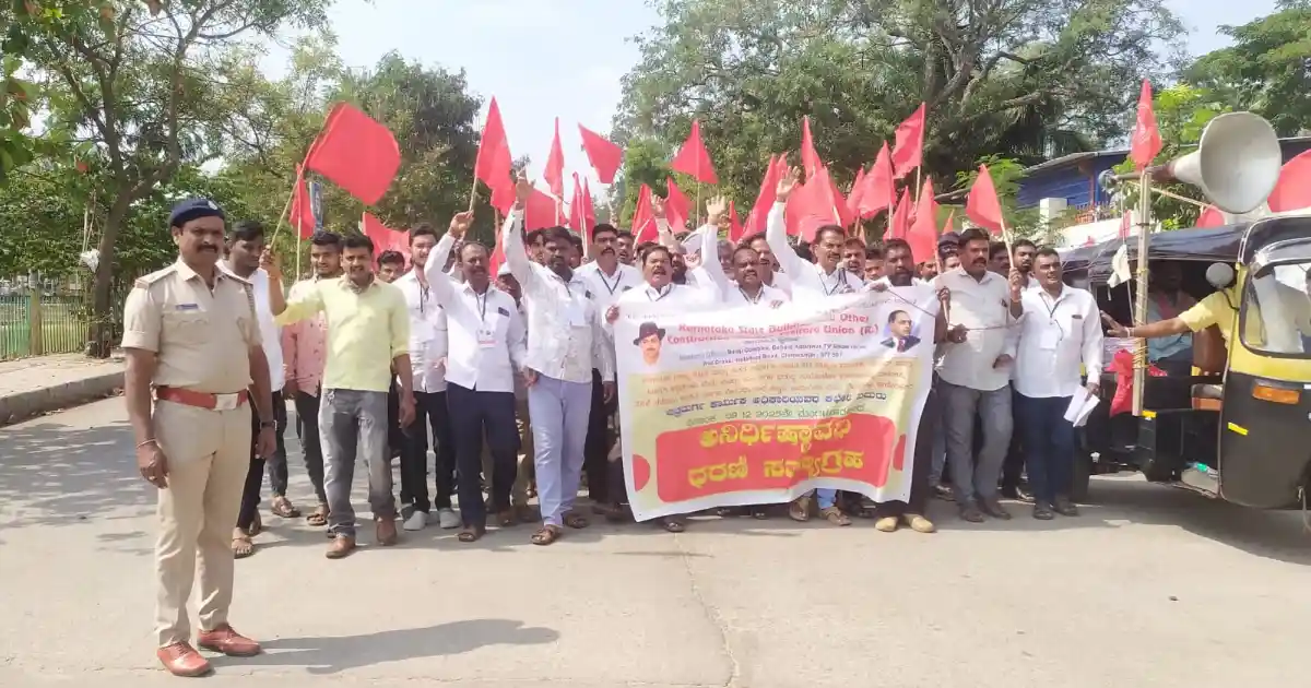 ಚಿತ್ರದುರ್ಗ ನಗರದಲ್ಲಿ ಪ್ರವಾಸಿ ಮಂದಿರದಿಂದ ಜಿಲ್ಲಾಧಿಕಾರಿಗಳ ಕಚೇರಿಯವರೆಗೂ ಪ್ರತಿಭಟನೆಯನ್ನು ನಡೆಸಿದ ಕಾರ್ಮಿಕರು ಕರ್ನಾಟಕ ರಾಜ್ಯ ಕಟ್ಟಡ ಮತ್ತು ಇತರೆ ನಿರ್ಮಾಣ ಕಾರ್ಮಿಕರ ಕಲ್ಯಾಣ ಮಂಡಳಿ ಪ್ರಾರಂಭಗೊಂಡು 18 ವರ್ಷಗಳು ಕಳೆದು ಹೋಗಿವೆ 2023ನೇ ಸಾಲಿನಿಂದ ಇಲ್ಲಿಯವರೆಗೆ ಮಂಡಳಿಯಲ್ಲಿ ಬೃಹತ್ ಬ್ರಷ್ಟಾಚಾರ ನಡೆದಿದ್ದು, ಟೆಂಡರ್ ನೀಡಿರುವ ಎಲ್ಲಾ ಯೋಜನೆಗಳ ತನಿಖೆಗೆ ಆದೇಶ ಮಾಡುವಂತೆ ಆಗ್ರಹಿಸಿದ್ದು, ನಮ್ಮ ಸಂಘದ ಹೋರಾಟಗಳ ಮುಖಾಂತರ ನೋಂದಾಯಿತ ಕಟ್ಟಡ ಕಾರ್ಮಿಕರ ಕಾನೂನುಗಳಿಗೆ ತಿದ್ದುಪಡಿ ತಂದು, ಅನೇಕ ಸೌಲಭ್ಯಗಳನ್ನು ಹೆಚ್ಚಿಗೆ ಮಾಡಿಸಿ, ನೋಂದಾಯಿತ ಕಟ್ಟಡ ಕಾರ್ಮಿಕರಿಗೆ ನಮ್ಮ ಸಂಘ ದಾರಿದೀಪವಾಗಿದೆ. ಈ ನಿಟ್ಟಿನಲ್ಲಿ ಇನ್ನೂ ಅನೇಕ ಬದಲಾವಣೆಗಾಗಿ 2023ನೇ ಸಾಲಿನಿಂದ ಇಲ್ಲಿಯವರೆಗೆ ಮಂಡಳಿಯಲ್ಲಿ ಬೃಹತ್ ಬ್ರಷ್ಟಾಚಾರ ನಡೆದಿದ್ದು, ಟೆಂಡರ್ ನೀಡಿರುವ ಎಲ್ಲಾ ಯೋಜನೆಗಳ ತನಿಖೆಗೆ ಆದೇಶ ಮಾಡುವಂತೆ ಆಗ್ರಹಿಸಿದೆ.