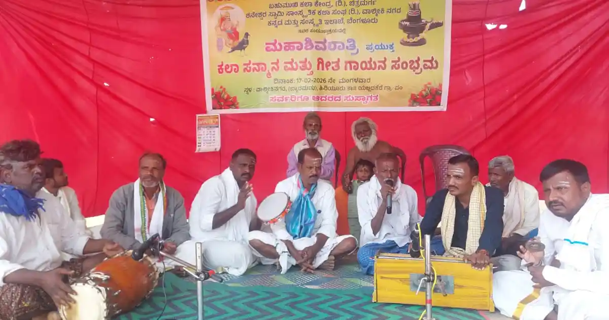 ಬಹುಮುಖಿ ಕಲಾ ಕೇಂದ್ರ, ಕನ್ನಡ ಮತ್ತು ಸಂಸ್ಕøತಿ ಇಲಾಖೆ ಇವುಗಳ ಸಹಯೋಗದೊಂದಿಗೆ ಯಲ್ಲದಕೆರೆ ಗ್ರಾಮ ಪಂಚಾಯಿತಿ ವ್ಯಾಪ್ತಿಯ ವಾಲ್ಮೀಕಿ ನಗರದಲ್ಲಿ ಹಮ್ಮಿಕೊಳ್ಳಲಾಗಿದ್ದ ಕಲಾ ಸನ್ಮಾನ ಹಾಗೂ ಗೀತ ಗಾಯನ ಕಾರ್ಯಕ್ರಮ ಉದ್ಗಾಟಿಸಿ ಮಾತನಾಡಿದರು.