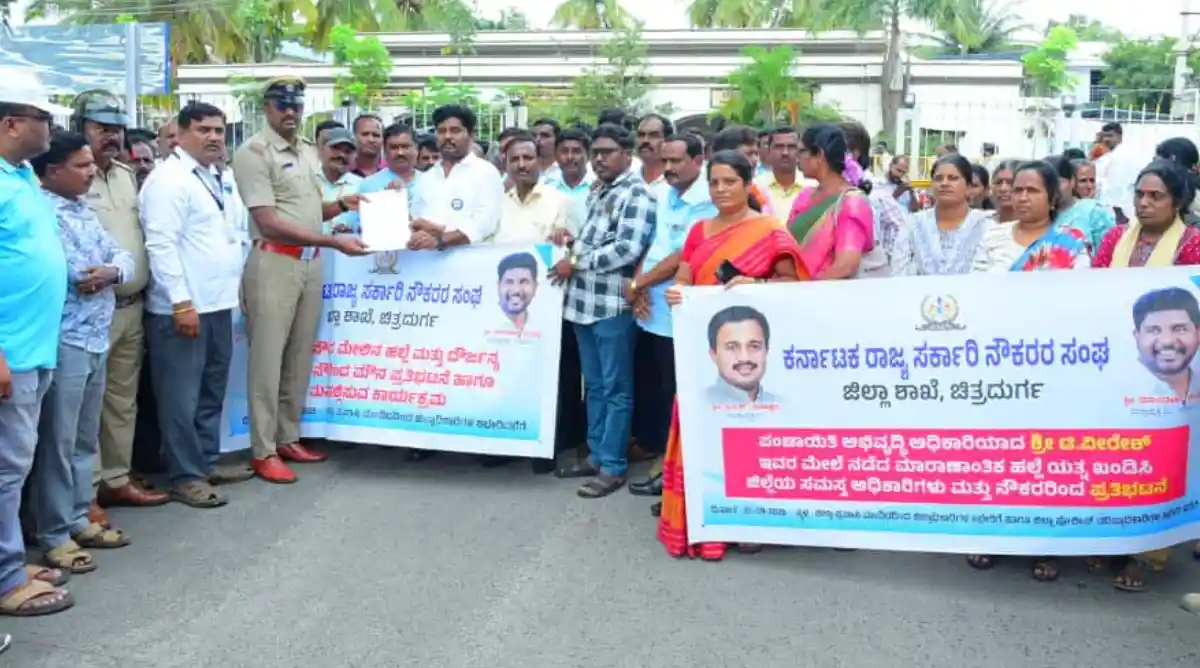 ಈ ಸಂದರ್ಭದಲ್ಲಿ ಮಾತನಾಡಿದ ರಾಜ್ಯ ಸರ್ಕಾರಿ ನೌಕರರ ಸಂಘದ ಜಿಲ್ಲಾ ಅಧ್ಯಕ್ಷ ಮಾಲತೇಶ ಮುದಜ್ಜಿ ಸರ್ಕಾರಿ ನೌಕರರು ಈಗಲೇ ಒತ್ತಡದ ನಡುವೆ ಕೆಲಸ ಮಾಡುತ್ತಿದ್ದಾರೆ. ಕೆಲವು ಕಿಡಿಗೇಡಿಗಳು, ಸರ್ಕಾರಿ ನೌಕರರಿಗೆ ಬೆದರಿಕೆ ಹಾಕುವುದು, ಕಿರುಕುಳ ನೀಡುವಂತಹ ಕಾರ್ಯ ಜಿಲ್ಲೆಯಲ್ಲಿ ಹೆಚ್ಚಾಗಿದ್ದು, ಇದರಿಂದಾಗಿ ಸರ್ಕಾರಿ ನೌಕರರು ಭಯದ ವಾತಾವರಣದಲ್ಲಿಯೇ ಕೆಲಸ ಮಾಡುವಂತಹ ಸ್ಥಿತಿ ನಿರ್ಮಾಣವಾಗಿದೆ. ಅಕ್ರಮಗಳಿಗೆ ಸಹಕಾರ ನೀಡುವಂತೆ ಬೆದರಿಕೆ ಹಾಕುವ ದುಷ್ಕರ್ಮಿಗಳು, ಸಹಕರಿಸದೇ ಇದ್ದರೆ, ಅಂತಹ ನೌಕರರನ್ನು ವಿವಿಧ ರೀತಿಯಲ್ಲಿ ಹೆದರಿಸಿ, ಕಿರುಕುಳ ನೀಡುವುದು, ವಿನಾಕಾರಣ ನೂರಾರು ಸಂಖ್ಯೆಯಲ್ಲಿ ಮಾಹಿತಿ ಹಕ್ಕು ಅರ್ಜಿಗಳನ್ನು ಸಲ್ಲಿಸಿ ಕಾಯ್ದೆಯ ದುರುಪಯೋಗ ಮಾಡುವುದು, ನೌಕರರ ಮೇಲೆ ಹಲ್ಲೆ ಮಾಡುವಂತಹ ಪ್ರಕರಣಗಳು ಕೂಡ ಜಿಲ್ಲೆಯಲ್ಲಿ ಇತ್ತೀಚೆಗೆ ಹೆಚ್ಚಾಗುತ್ತಿವೆ. ಹೀಗಾಗಿ ಸರ್ಕಾರಿ ನೌಕರರು ಪ್ರಾಮಾಣಿಕತೆಯಿಂದ ಭಯಮುಕ್ತ ವಾತಾವರಣದಲ್ಲಿ ಕೆಲಸ ಮಾಡುವಂತಾಗಬೇಕು. ಈ ನಿಟ್ಟಿನಲ್ಲಿ ಬೆದರಿಕೆ ಒಡ್ಡುವವರ ವಿರುದ್ಧ ಸೂಕ್ತ ಕಾನೂನು ಕ್ರಮ ಜರುಗಿಸಬೇಕು ಎಂದು ಆಗ್ರಹಿಸಿದರು.