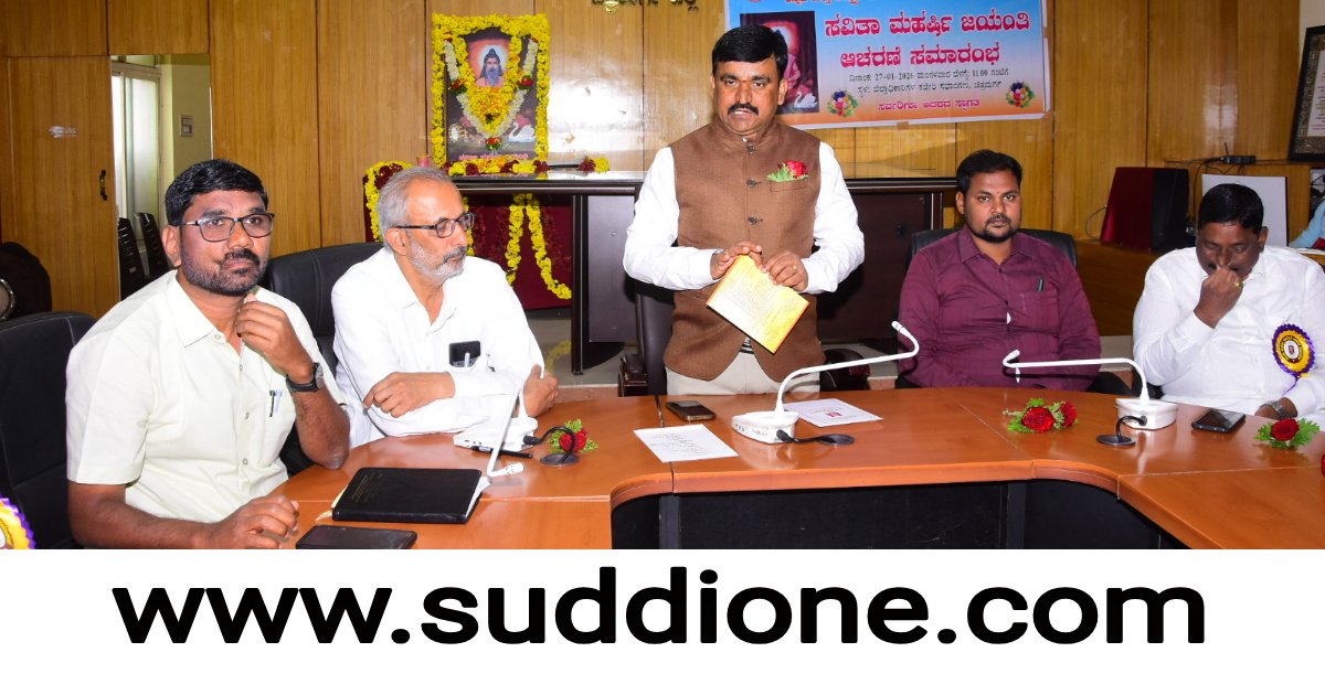 ನಗರದ ಜಿಲ್ಲಾಧಿಕಾರಿಗಳ ಕಚೇರಿ ಸಭಾಂಗಣದಲ್ಲಿ ಮಂಗಳವಾರ ಸವಿತಾ ಮಹರ್ಷಿ ಜಯಂತಿಯ ಅಂಗವಾಗಿ ಆಯೋಜಿಸಲಾಗಿದ್ದ ಕಾರ್ಯಕ್ರಮದಲ್ಲಿ, ಸವಿತಾ ಮಹರ್ಷಿ ಭಾವಚಿತ್ರಕ್ಕೆ ಪುಷ್ಪ ನಮನ ಸಲ್ಲಿಸಿ ಅವರು ಮಾತನಾಡಿದರು.