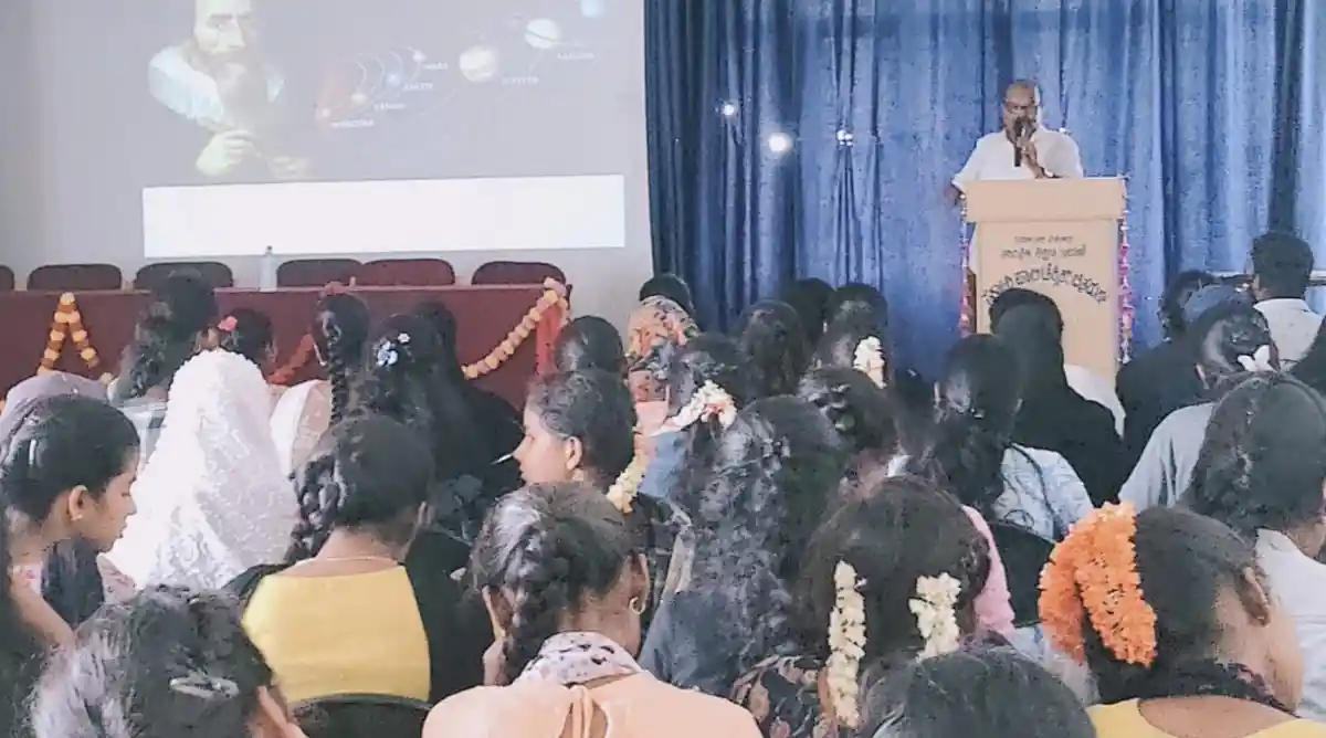 ನಗರದ ಸರ್ಕಾರಿ ಪಾಲಿಟೆಕ್ನಿಕ್ ಕಾಲೇಜಿನಲ್ಲಿ “ಖಗೋಳ ವಿಸ್ಮಯ” ಕುರಿತು ಉಪನ್ಯಾಸ ನೀಡಿದರು. “ವಿಜ್ಞಾನ ವಿಷಯವು ಕೇವಲ ಜ್ಞಾನಾರ್ಜನೆಗೆ ಸೀಮಿತವಾಗದೆ, ಬದುಕನ್ನು ಹಸನಾಗಿಸಬೇಕು ಹಾಗೂ ಸಮಾಜಕ್ಕೆ ಉಪಯುಕ್ತವಾಗಬೇಕು. ವಿದ್ಯಾರ್ಥಿಗಳು ಸೃಜನಾತ್ಮಕ ಹಾಗೂ ಆತ್ಮಸ್ಥೈರ್ಯ, ಕ್ರಿಯಾಶೀಲ ಮನೋಭಾವವನ್ನು ಬೆಳೆಸಿಕೊಂಡು ಹೊಸ ಹೊಸ ಸಂಶೋಧನೆಯ ಕಡೆಗೆ ಗಮನ ನೀಡಲಿ” ಎಂದು ಖಗೋಳ ವಿಸ್ಮಯ ಕುರಿತು ಪ್ರಾತ್ಯಕ್ಷಿಕೆಗಳ ಮೂಲಕ ಉಪನ್ಯಾಸ ನೀಡಿದರು. ಕಾರ್ಯಕ್ರಮದಲ್ಲಿ ಕಾಲೇಜಿನ ಪ್ರಾಂಶುಪಾಲ ಶ್ರೀ ರಾಘವೇಂದ್ರಚಾರ್, ಉಪನ್ಯಾಸಕರಾದ ರಮೇಶ್, ಹರೀಶ್ ಹಾಗೂ ಸೈನ್ಸ್ ಫೌಂಡೇಶನ್ ಖಜಾಂಚಿ ನಾಗಲಿಂಗರೆಡ್ಡಿ ಉಪಸ್ಥಿತರಿದ್ದರು.