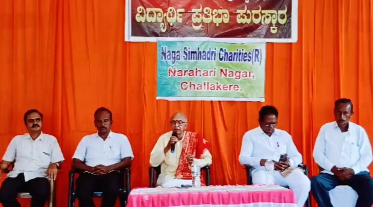 ಶ್ರೀನರಹರಿ ಸೇವಾ ಪ್ರತಿಷ್ಠಾನ ಹಾಗೂ ನಾಗ ಸಿಂಹಾದ್ರಿ ಚಾರಿಟೀಸ್ ನ ವತಿಯಿಂದ ನರಹರಿ ನಗರದ ಶ್ರೀನರಹರೇಶ್ವರ ದೇವಸ್ಥಾನದ ಆವರಣದಲ್ಲಿ ಆಯೋಜಿಸಿದ್ದ 2024-25ನೇ ಸಾಲಿನ ಎಸ್ ಎಸ್ ಎಲ್ ಸಿ ಮತ್ತು ಪಿಯುಸಿ ಪರೀಕ್ಷೆಯಲ್ಲಿ ಶೇಕಡ 95 ಕ್ಕಿಂತ ಹೆಚ್ಚು ಅಂಕಗಳನ್ನು ಪಡೆದ ಪ್ರತಿಭಾವಂತ ವಿದ್ಯಾರ್ಥಿಗಳಿಗೆ “ಪ್ರತಿಭಾ ಪುರಸ್ಕಾರ”ಹಾಗೂ “ಕಾಲುವೆಹಳ್ಳಿಯ ಶತಾಯುಷಿ ಸೂಲಗಿತ್ತಿ ತಳುಕಿನ ತಿಮ್ಮಕ್ಕ”ರ ಸೇವೆಯನ್ನು ಗುರುತಿಸಿ ಸನ್ಮಾನಿಸಿ ಅವರು ಆಶೀರ್ವಚನ ನೀಡಿದರು.