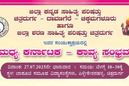 ಸುದ್ದಿಒನ್, ಚಿತ್ರದುರ್ಗ, ಜುಲೈ. 26 : ಮಧ್ಯ ಕರ್ನಾಟಕ ಕಾವ್ಯ ಸಂಭ್ರಮ ಕಾರ್ಯಕ್ರಮದ ನಾಳೆ (ದಿನಾಂಕ…