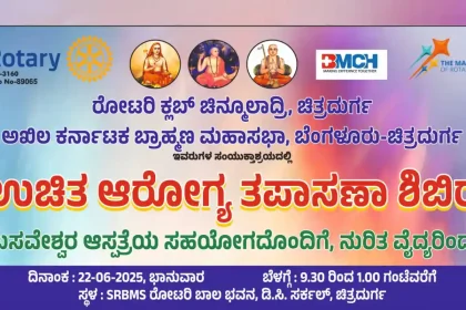 ಚಿತ್ರದುರ್ಗ, ಜೂನ್. 20 : ನಗರದ ರೋಟರಿ ಎಸ್.ಆರ್.ಬಿ.ಎಂ.ಎಸ್ ಬಾಲಭವನದಲ್ಲಿ (ಡಿ.ಸಿ. ಆಫೀಸ್ ಸರ್ಕಲ್ ಬಳಿ)…