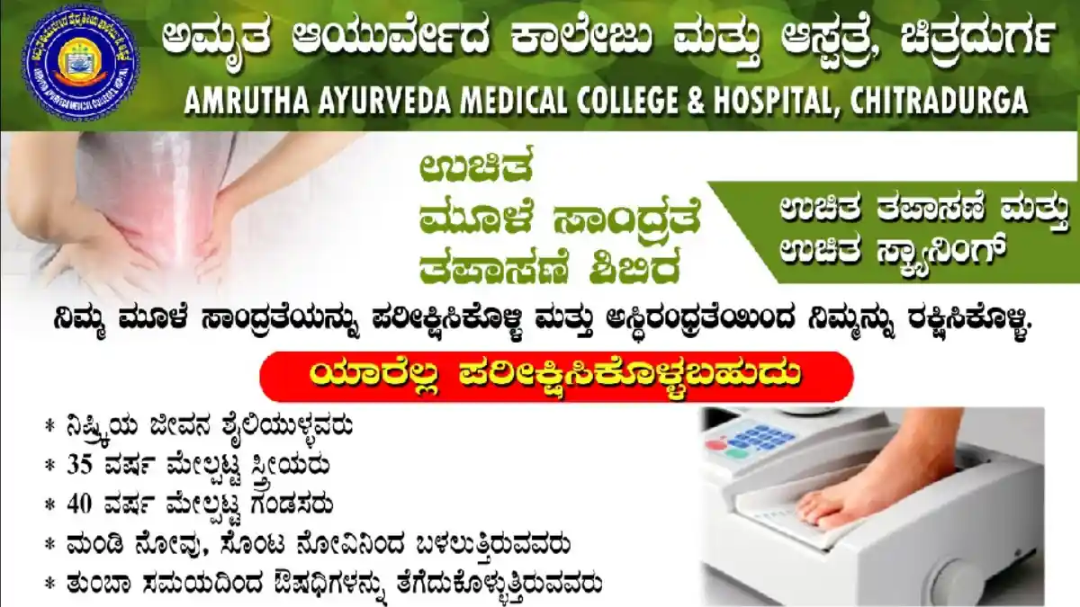ಚಿತ್ರದುರ್ಗ | ಏಪ್ರಿಲ್ 07 ರಂದು ಉಚಿತ ಮೂಳೆ ಸಾಂದ್ರತೆ ತಪಾಸಣೆ ಶಿಬಿರ