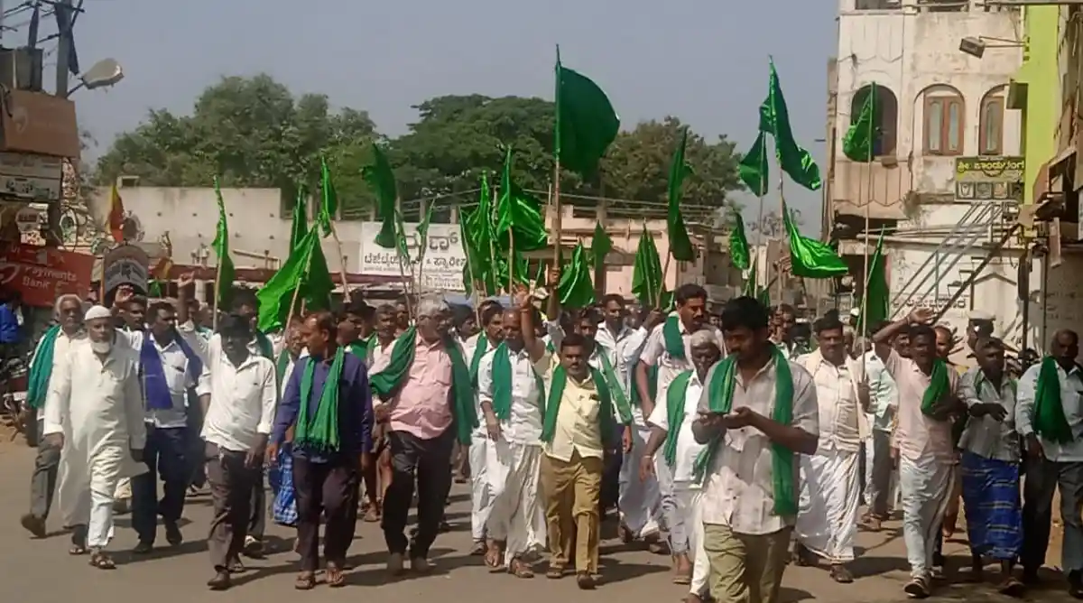 ಪ್ರತಿಭಟನಾಕಾರರು ಮೆರವಣಿಗೆ ನಡೆಸಿದ ಬಳಿಕ ನೆಹರೂ ಮಾರುಕಟ್ಟೆ ಬಳಿಯ ಕಣಿವೆ ಮಾರಮ್ಮ ದೇವಸ್ಥಾನದ ಬಳಿ ಸಭೆ ನಡೆಸಿದರು.