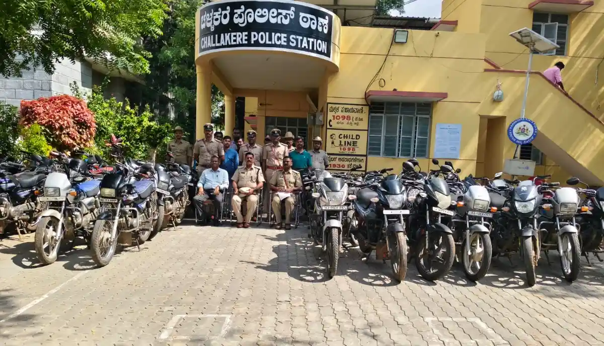 ಸುದ್ದಿಒನ್, ಚಳ್ಳಕೆರೆ, ಅಕ್ಟೋಬರ್. 09 : ಚಳ್ಳಕೆರೆ ಪೊಲೀಸರು ಭರ್ಜರಿ ಕಾರ್ಯಾಚರಣೆ ನಡೆಸಿ ಬೈಕ್ ಕಳ್ಳನನ್ನು ಬಂಧಿಸಿ 37 ದ್ವಿಚಕ್ರ ವಾಹನಗಳನ್ನು ವಶಪಡಿಸಿಕೊಳ್ಳುವಲ್ಲಿ ಯಶಸ್ವಿಯಾಗಿದ್ದಾರೆ.