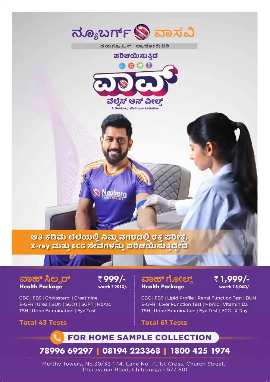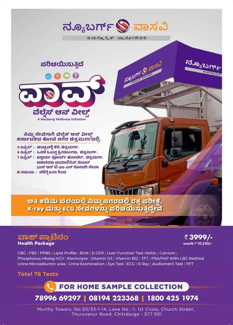 ವಾಸವಿ ಲ್ಯಾಬ್–ನ್ಯೂಬರ್ಗ್ ಡಯಾಗ್ನೊಸ್ಟಿಕ್ಸ್ : ಚಿತ್ರದುರ್ಗದಲ್ಲಿ 3 ದಿನಗಳ ವಿಶೇಷ ಆರೋಗ್ಯ ಶಿಬಿರ