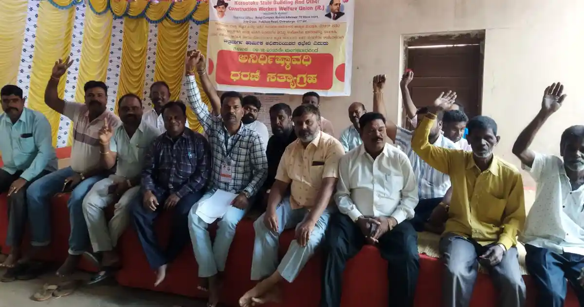 ಕರ್ನಾಟಕ ರಾಜ್ಯ ಕಟ್ಟಡ ಮತ್ತು ಇತರೆ ನಿರ್ಮಾಣ ಕಾರ್ಮಿಕರ ಕ್ಷೇಮಾಭಿವೃದ್ದಿ ಸಂಘದ ರಾಜ್ಯಾಧ್ಯಕ್ಷ ಜೆ.ಮಂಜುನಾಥ್, ಡಿ.ಈಶ್ವರಪ್ಪ, ಆರ್.ಗೌಸ್ಪೀರ್, ನರಸಿಂಹಮೂರ್ತಿ